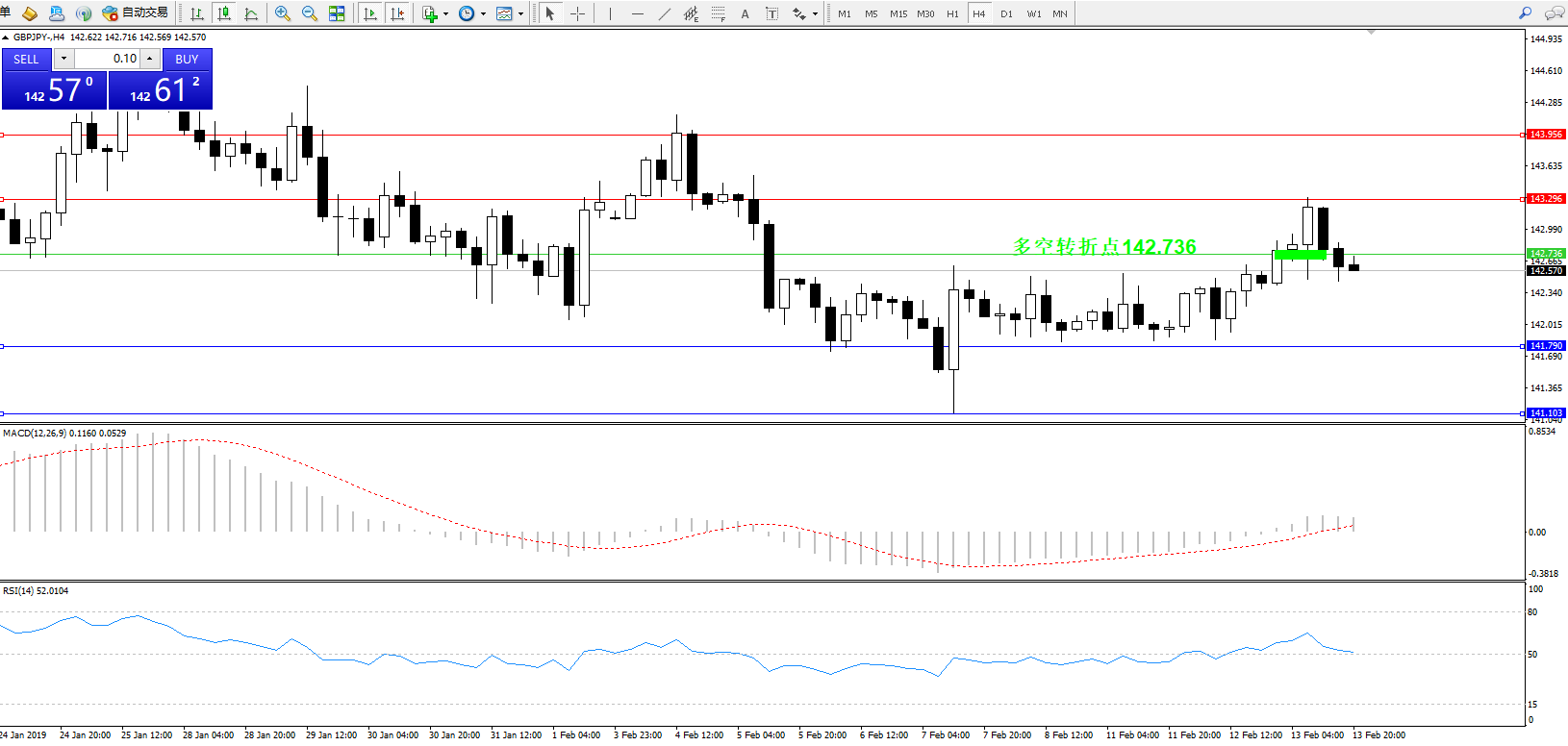 交易策略:142.736下方看跌,目标141.790141.103