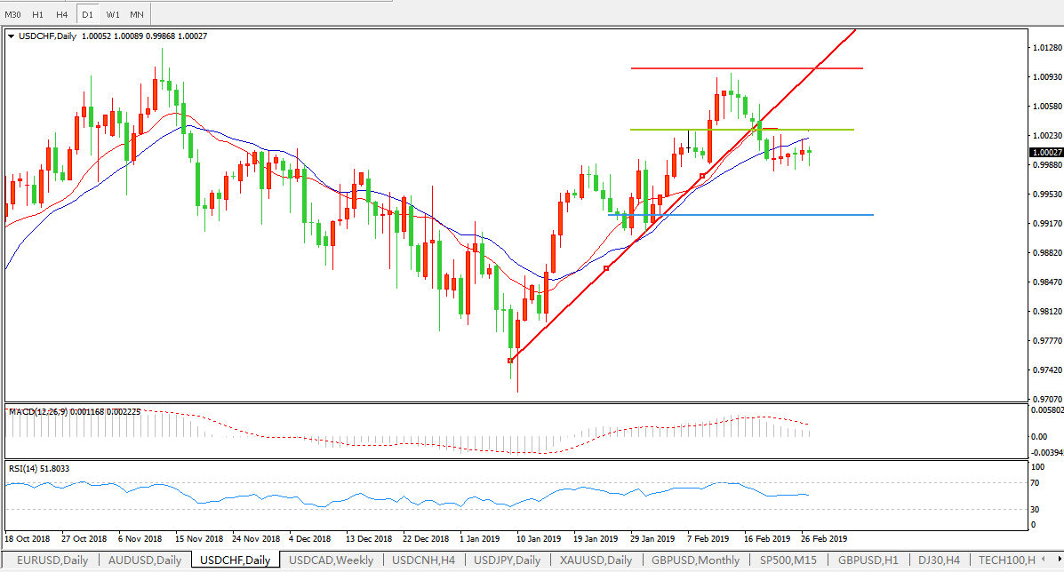 美元兑瑞郎USDCHF日线图
