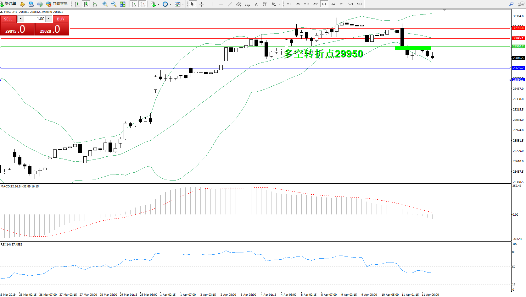 恒指HK50 ——1小时K线图显示: