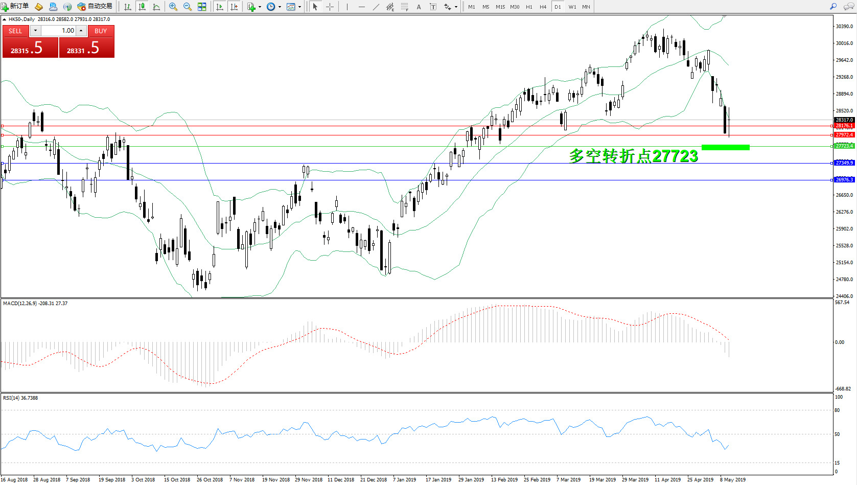 恒指HK50 ——日K线图显示: