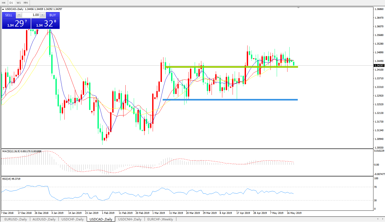 美元兑加元USDCAD 日线图: