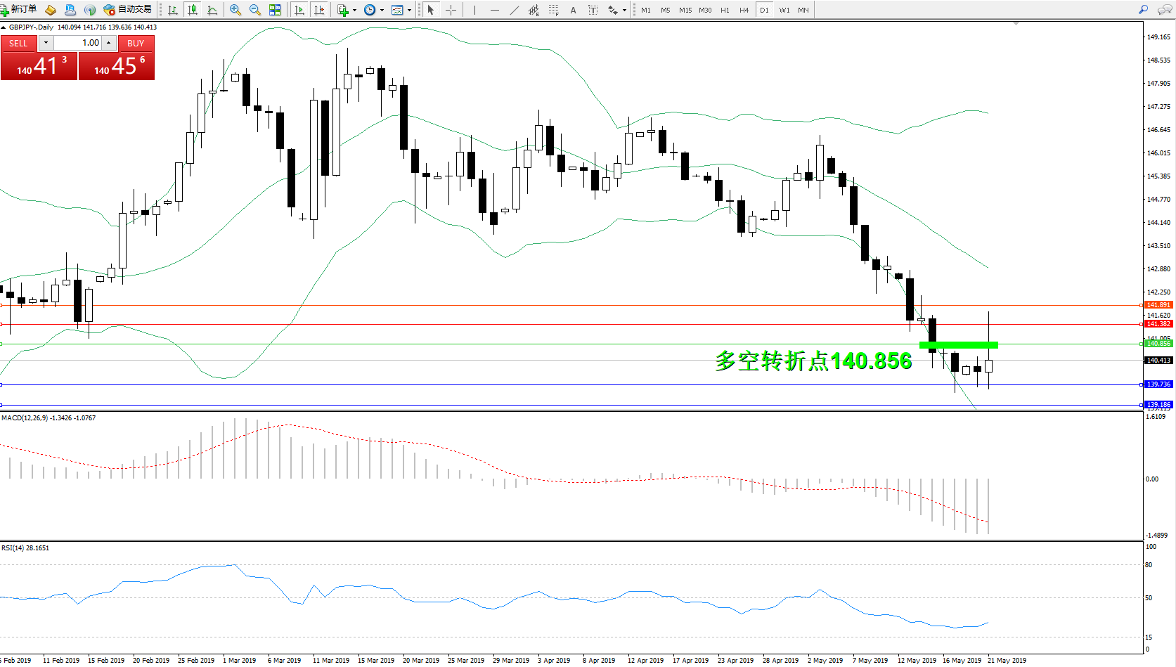 交易策略:140.856下方看跌,目标139.736、139.186