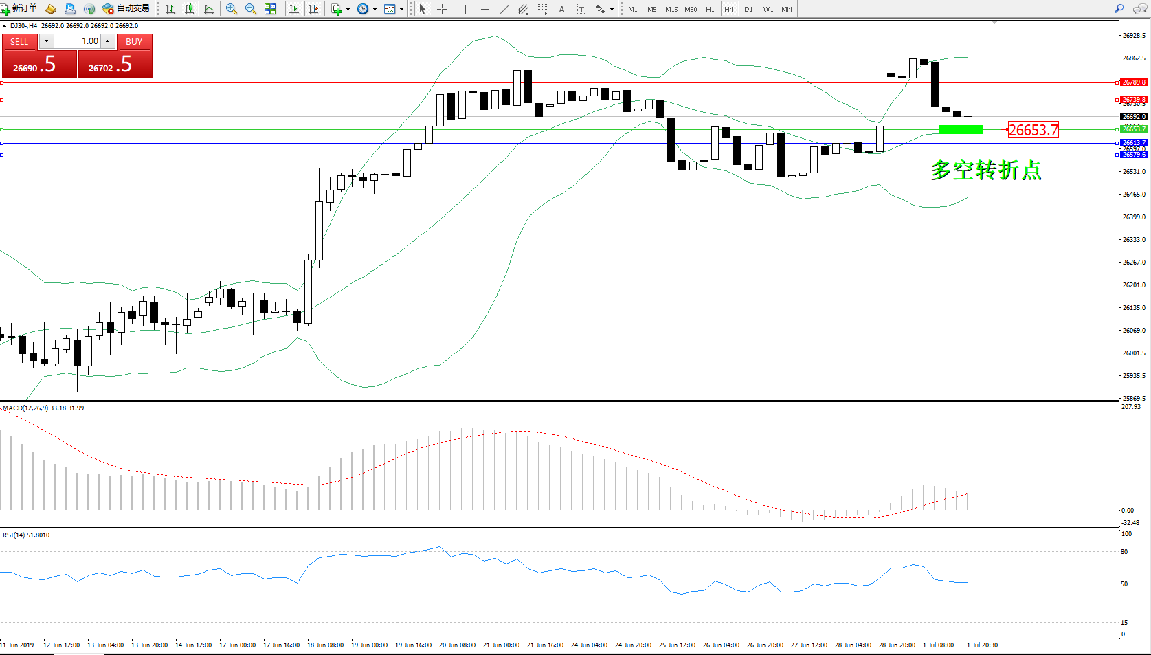 交易策略:26653上方看涨,目标26739、26789