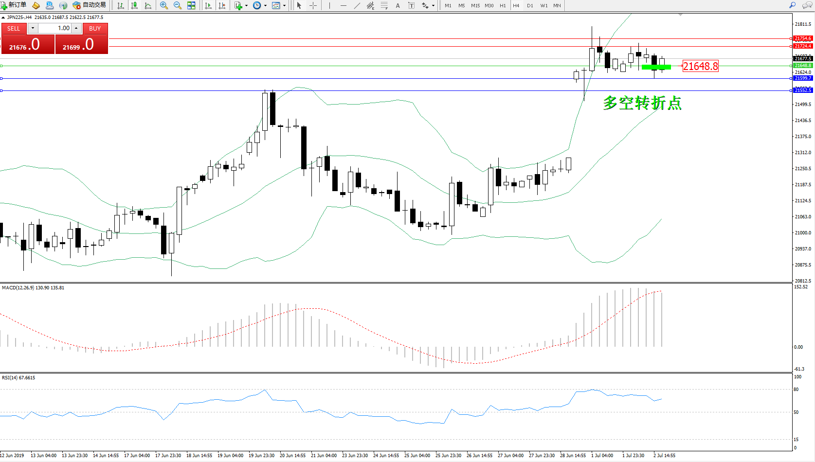交易策略:21648上方看涨,目标21724、21754