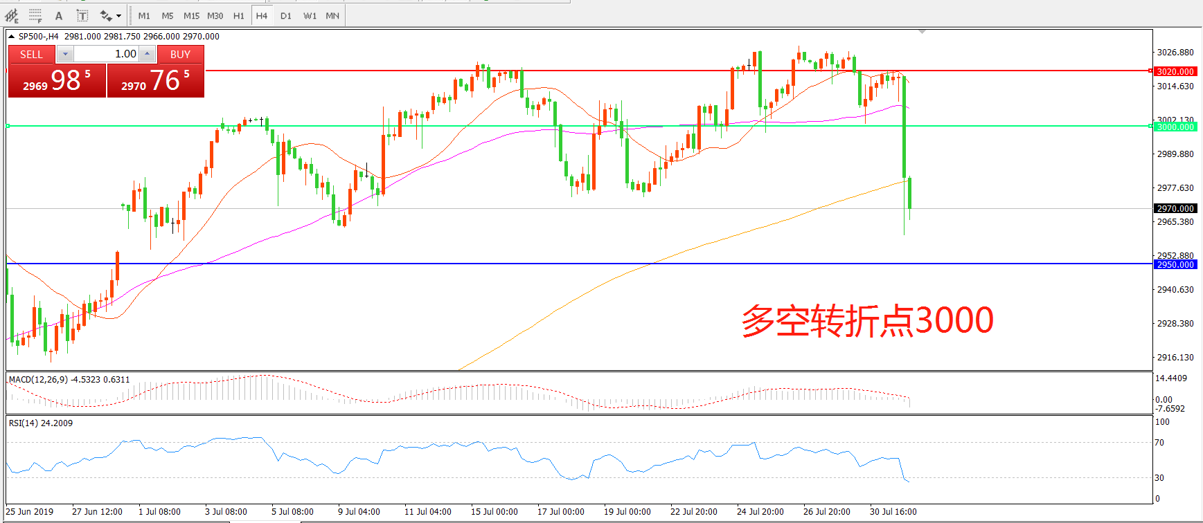 多空转折点:3000.00