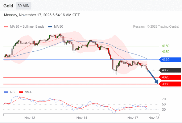 在 4110 之下,看跌,目标价位为 4020 ,然后为 3985 。