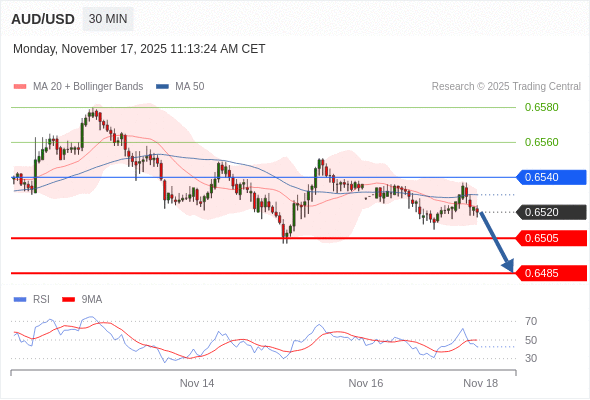 交易策略: 在 0.6540 之下,看跌,目标价位为 0.6505 ,然后为 0.6485 。