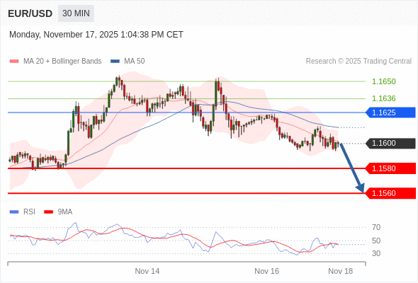 在 1.1625 之下,看跌,目标价位为 1.1580 ,然后为 1.1560 。