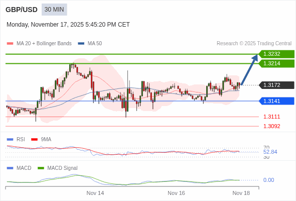 交易策略: 看涨,当 1.3141 为支撑位,目标定在1.3232。