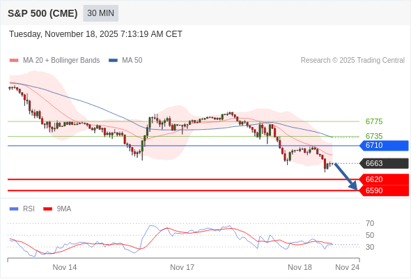 在 6710 之下,看跌,目标价位为 6620 ,然后为 6590 。
