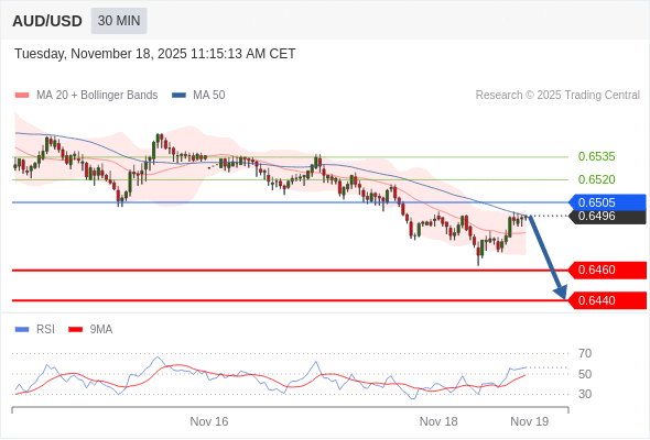 在 0.6505 之下,看跌,目标价位为 0.6460 ,然后为 0.6440 。