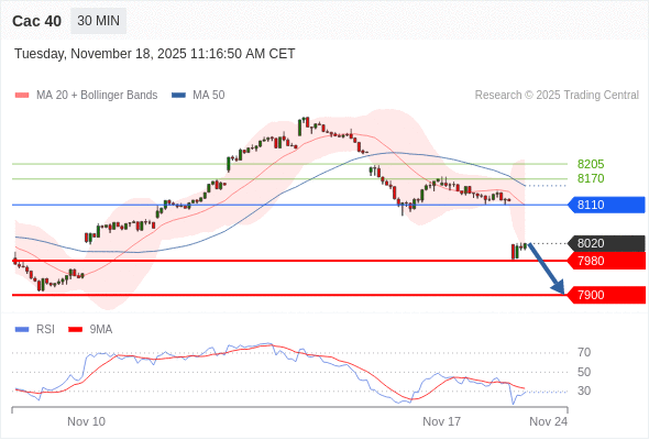 Cac 40 当日内: 短期关键阻力位在8110。