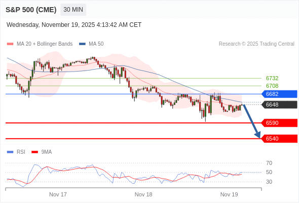 在 6682 之下,看跌,目标价位为 6590 ,然后为 6540 。