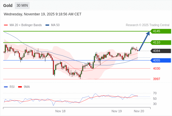 在 4055 之上,看涨,目标价位为 4110 ,然后为 4145 。