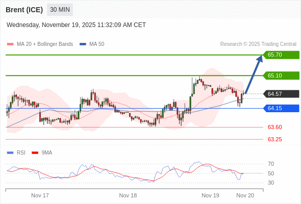 在 64.15 之上,看涨,目标价位为 65.10 ,然后为 65.70 。