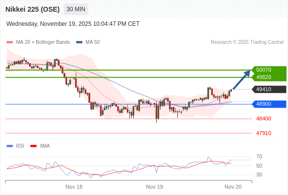 日经225股指期货 (OSE) 当日内: 在48900之上,看涨。