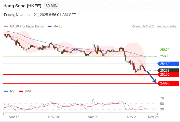在 25460 之下,看跌,目标价位为 25150 ,然后为 24890 。
