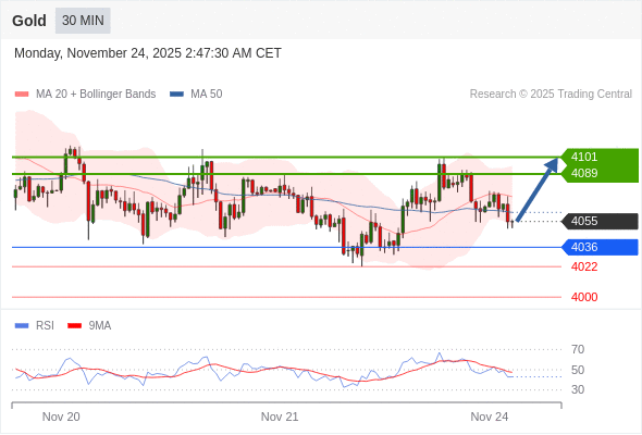 在 4036 之上,看涨,目标价位为 4089 ,然后为 4101 。