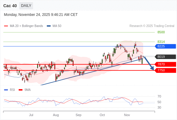 Cac 40 短线: 没有明显变化趋势。