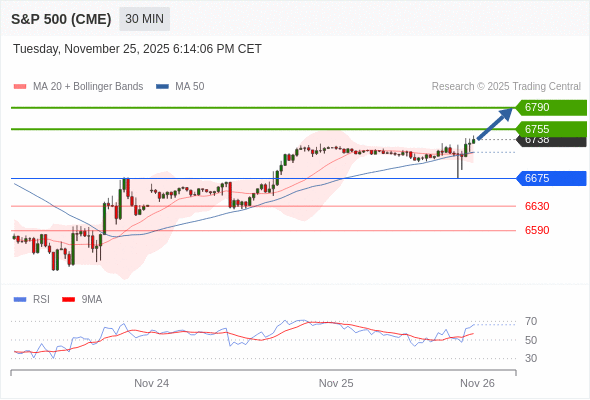 在 6665 之上,看涨,目标价位为 6755 ,然后为 6790 。