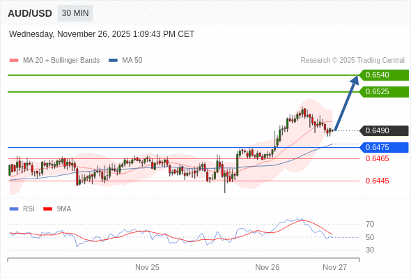 在 0.6475 之上,看涨,目标价位为 0.6525 ,然后为 0.6540 。