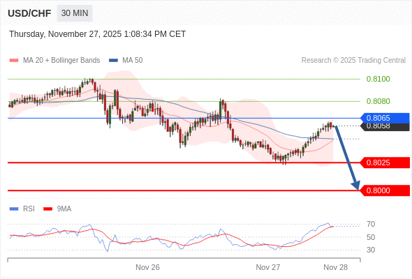 在 0.8065 之下,看跌,目标价位为 0.8025 ,然后为 0.8000 。