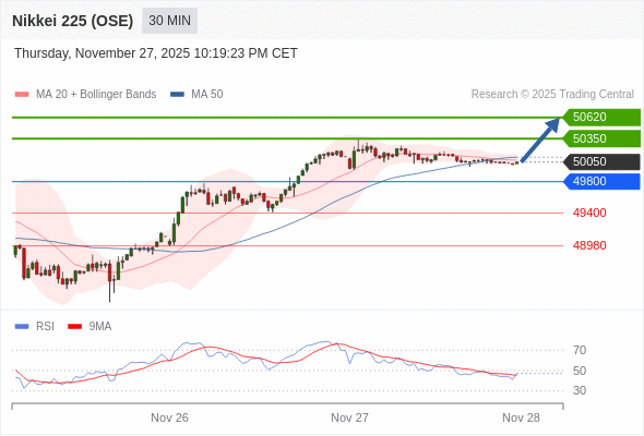 在 49800 之上,看涨,目标价位为 50350 ,然后为 50620 。