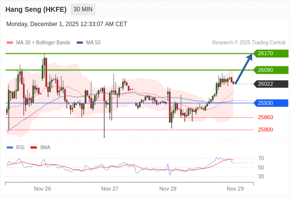 在 25930 之上,看涨,目标价位为 26090 ,然后为 26170 。