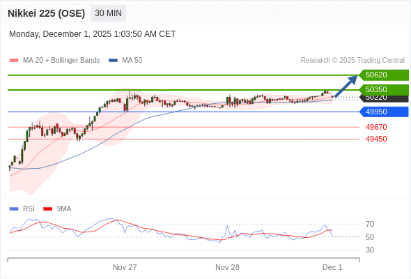 在 49950 之上,看涨,目标价位为 50350 ,然后为 50620 。