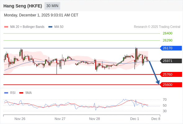 在 26170 之下,看跌,目标价位为 25760 ,然后为 25600 。