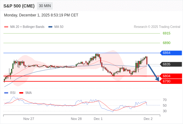 在 6864 之下,看跌,目标价位为 6804 ,然后为 6790 。