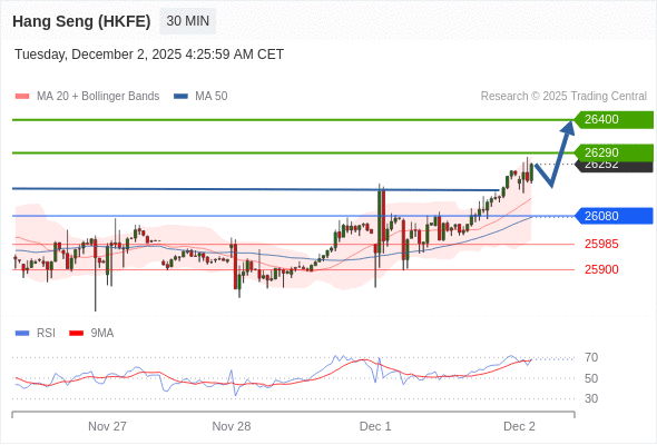 在 26080 之上,看涨,目标价位为 26290 ,然后为 26400 。