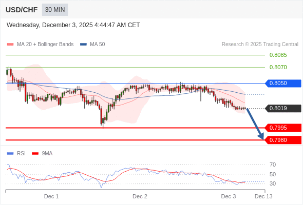 在 0.8050 之下,看跌,目标价位为 0.7995 ,然后为 0.7980 。