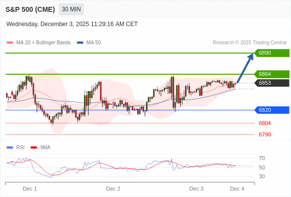 在 6820 之上,看涨,目标价位为 6864 ,然后为 6890 。