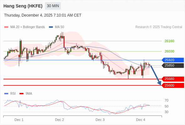 香港恒生指数期货 当日内: 短期关键阻力位在25920。