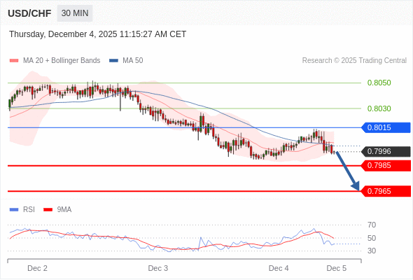 在 0.8015 之下,看跌,目标价位为 0.7985 ,然后为 0.7965 。