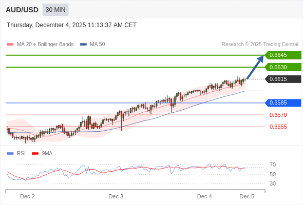 在 0.6585 之上,看涨,目标价位为 0.6630 ,然后为 0.6645 。