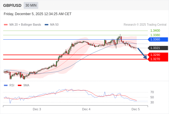 在 1.3360 之下,看跌,目标价位为 1.3290 ,然后为 1.3270 。