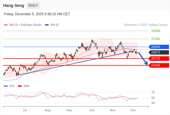 在 26500 之下,看跌,目标价位为 25170 ,然后为 24400 。