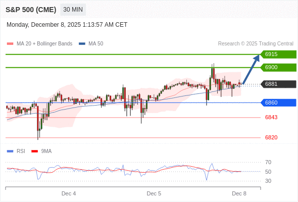 在 6860 之上,看涨,目标价位为 6900 ,然后为 6915 。
