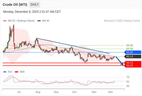 交易策略: 在 62.50 之下,看跌,目标价位为 56.50 ,然后为 55.00 。
