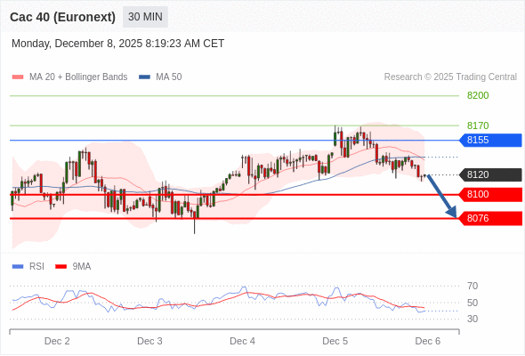 在 8155 之下,看跌,目标价位为 8100 ,然后为 8076 。