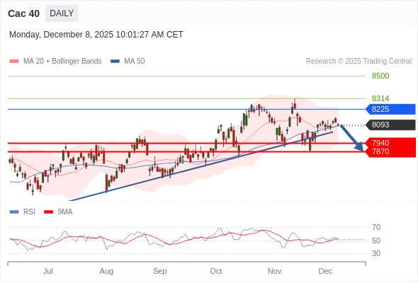 Cac 40 短线: 短期调整。