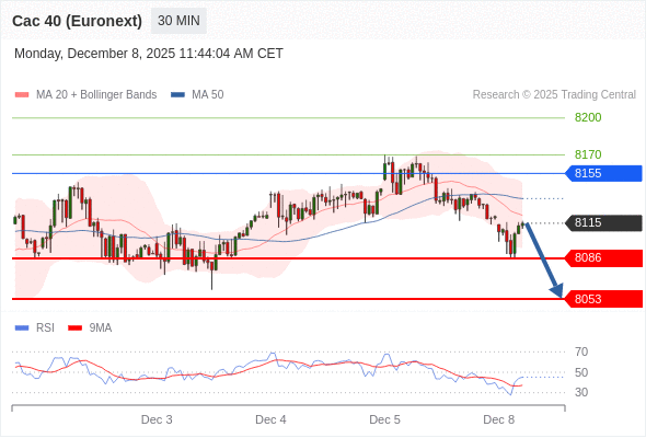在 8155 之下,看跌,目标价位为 8086 ,然后为 8053 。