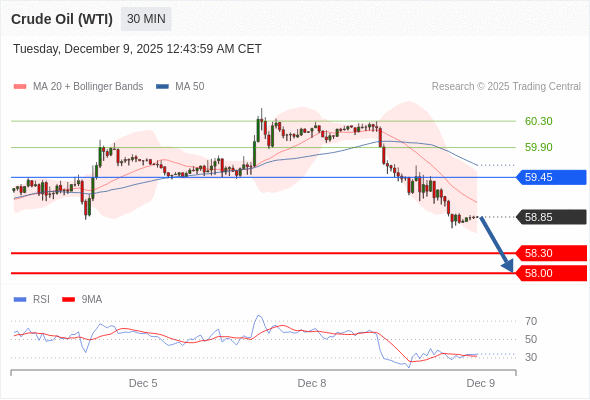 在 59.45 之下,看跌,目标价位为 58.30 ,然后为 58.00 。