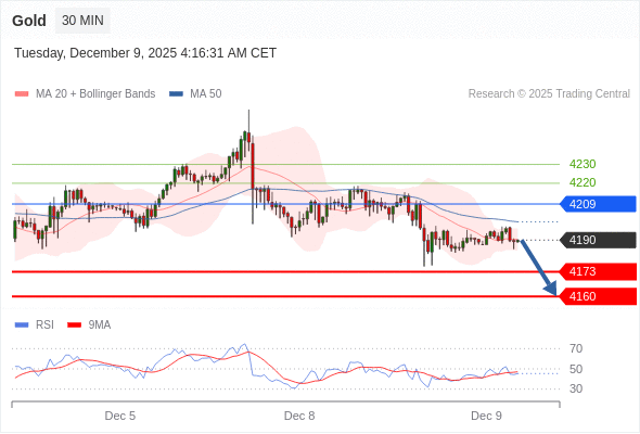 在 4209 之下,看跌,目标价位为 4173 ,然后为 4160 。