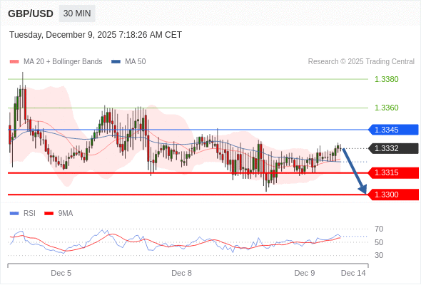 在 1.3345 之下,看跌,目标价位为 1.3315 ,然后为 1.3300 。