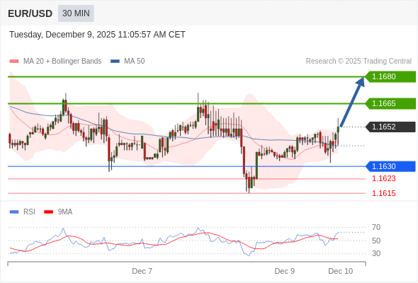 在 1.1630 之上,看涨,目标价位为 1.1665 ,然后为 1.1680 。