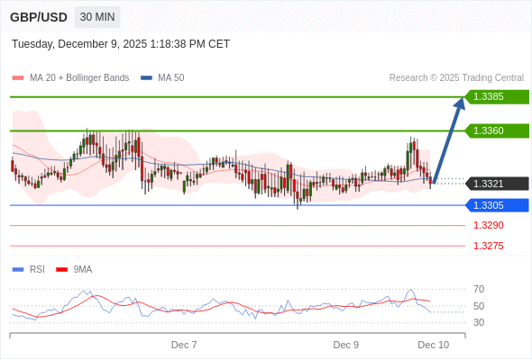 在 1.3305 之上,看涨,目标价位为 1.3360 ,然后为 1.3365 。