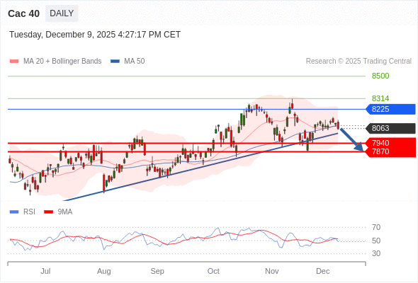 Cac 40 短线: 存在压力。
